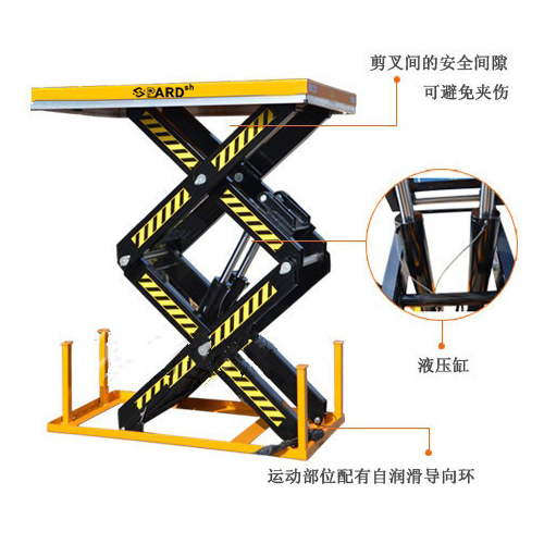 台面下方配有安全档条装置,当台面下降遇到障碍物停止下降,确保安全